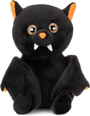 - Adorable 7.5 inch tall soft plush black bat with orange wings and ears and sparkling eyes, machine washable