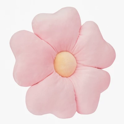 Add a little flower power to your child’s room with this pretty decorative plush flower throw pillow. It is made in a soft pink velour with a sunshine yellow center. It is approximately 13” in diameter and has five petals that are 5” X 7” each. It makes the perfect addition to any nursery or child’s room and is a baby-safe plush toy too.