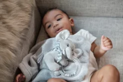 Bearington Collection Lil’ Spout Plush Stuffed Animal Gray Elephant Ring Rattle, 5.5″