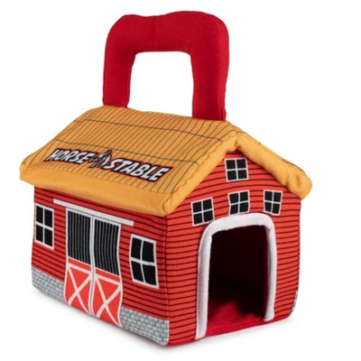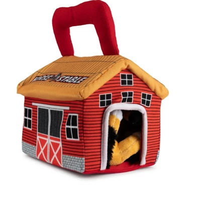 - SIZE: These huggable plush toy horses are compact, lightweight, and easy to carry along. Each individual miniature plush pony measures 4 inches in height, and the plush horse barn carrier dimensions are 6.5 x 5.5 x 8 inches. Its a perfect size for your toddler or baby to carry indoor while at home or take-along on the go. Your children will love to play with this fun ultra-cute plush horse set.